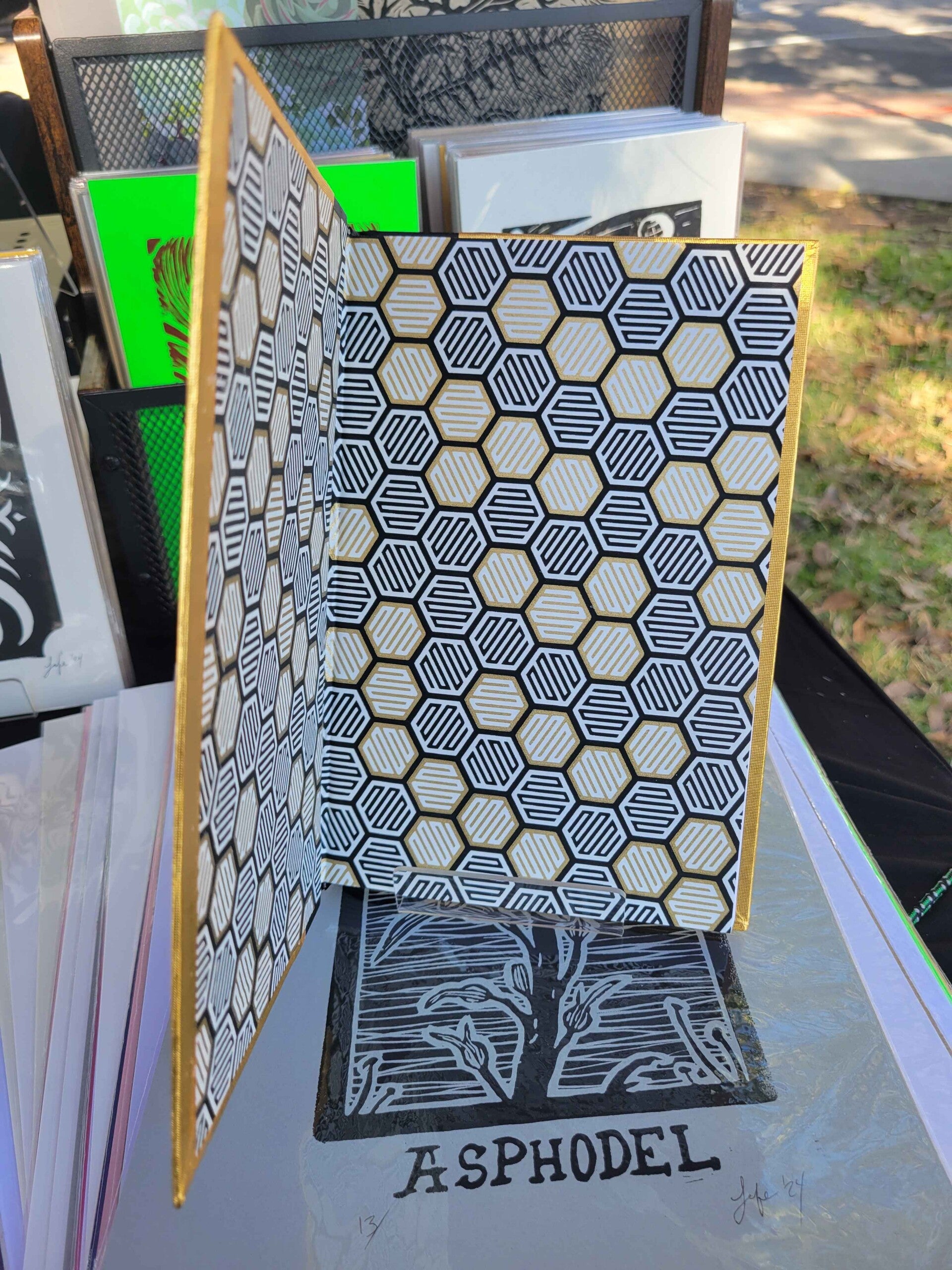 These journals are ENTIRELY hand made! I fold the signatures, sew the text block, glue and mull the spine, and create the cases entirely myself. The papers range from gold origami papers, Chiyogami papers, to paste and marbled papers that I made myself!
